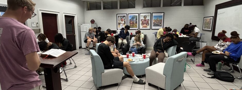 We partner with our local churches and ministry leaders to host a weekly meal where students can be fed physically and spiritually through the preaching of God’s Word.